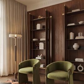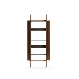 Bucks Bookcase is a refined expression of vertical elegance and architectural balance. Defined by its tall, structured silhouette, it features a series of clean-lined shelves framed by bold side panels. Crafted in wood with subtle metal accents, the design plays with contrast and depth, creating a dynamic yet minimalist composition. The open structure allows for both display and functionality, making it ideal for showcasing books and curated objects.